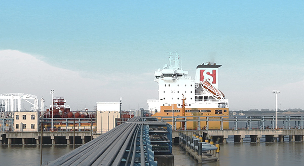 There are 55 storage tanks in the depot, including 8 spherical tanks and 47 vaulted tanks, which can store 220 thousand cubic meters of liquid storage. The depot can accommodate 60 tank cars at the same time. As the largest liquid chemical transport wharf along the Yangzte River, the wharf has a work platform stretching 445 meters long. External berths can be used in combination to moor at most two vessels with a capacity of 50,000 DWT and 20,000 DWT, respectively, at a time. Three internal berths can accommodate vessels up to a capacity of 500 DWT.